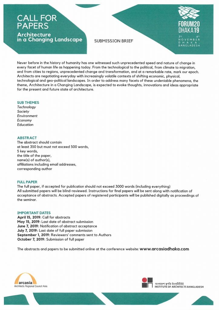 FOR DETAILS ABOUT FORUM 20 : WWW.ARCASIADHAKA.COM