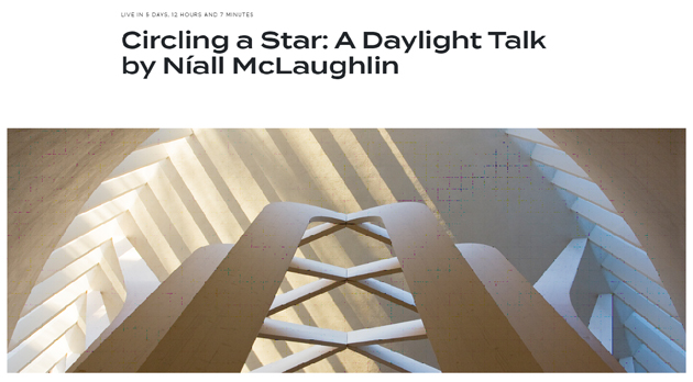 เชิญผู้สนใจร่วมฟังบรรยาย ในหัวอข้อ Circling a Star : A Daylight Talk โดย Níall McLaughlin สถาปนิกชาวอังกฤษผู้ก่อตั้งบริ