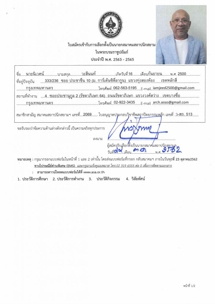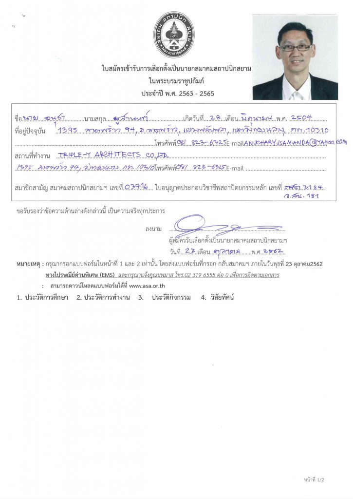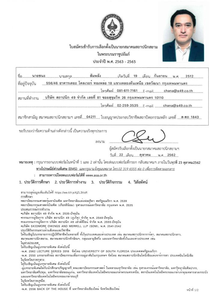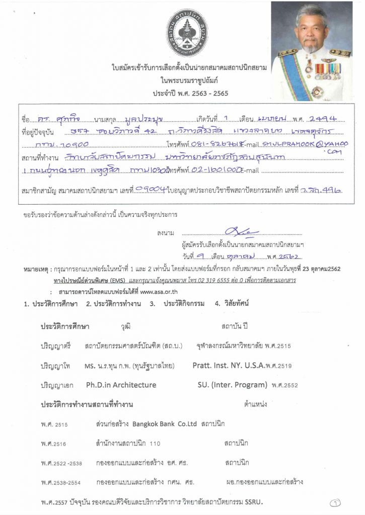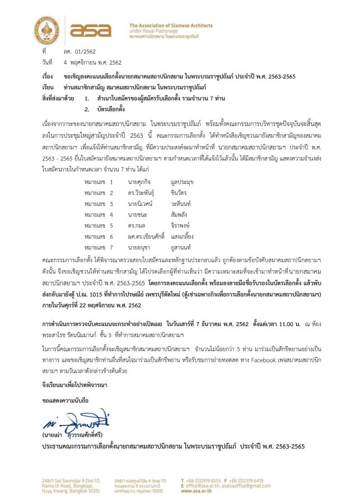 ขอเชิญสมาชิกสามัญ ลงคะแนนเลือกตั้งนายกสมาคมสถาปนิกสยาม ในพระบรมราชูปถัมภ์ ประจำปี 2563-2565