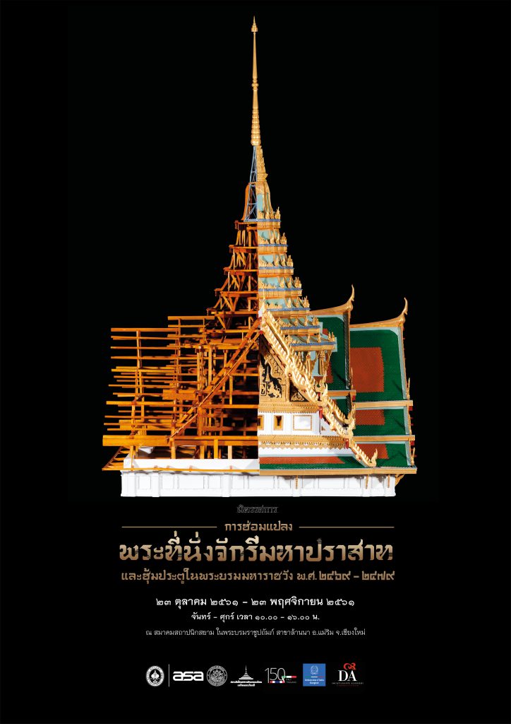 นิทรรศการในหัวข้อ “การซ่อมแปลงพระที่นั่งจักรีมหาปราสาทและซุ้มประตูในพระบรมมหาราชวัง พ.ศ. 2469-2479” นี้แสดงโครงการสถาปัตยกรรมที่เป็นการทำงานร่วมกันระหว่างสมเด็จฯ เจ้าฟ้ากรมพระยานริศรานุวัดติวงศ์และนายช่างชาวไทยคนอื่น ๆ กับทีมนายช่างอิตาเลียนที่รับราชการอยู่ในศิลปากรสถาน ราชบัณฑิตยสภา เนื้อหานิทรรศการนำเสนอประวัติความเป็นมาในการบูรณะพระที่นั่งจักรีมหาปราสาทและซุ้มประตูในพระบรมมหาราชวัง ผ่านเอกสารทางประวัติศาสตร์ ไม่ว่าจะเป็นเอกสารการก่อสร้าง, ภาพลายเส้น, แบบสถาปัตยกรรม, ภาพถ่ายเก่า, และภาพสามมิติ ที่สำคัญคือหุ่นจำลองสถาปัตยกรรมที่แสดงให้เห็นถึงลักษณะความเป็น “ลูกผสม” ทั้งในด้านรูปแบบ โครงสร้าง และเทคนิคการตกแต่งทางสถาปัตยกรรมของโครงสร้างหลังคายอดพระที่นั่งจักรีมหาปราสาทองค์ตะวันออก และซุ้มประตูพรหมโสภากับซุ้มประตูสวัสดิโสภา ซึ่งนับเป็นครั้งแรกในการศึกษาข้อมูลเรื่องนี้และแสดงผลออกมาอย่างเป็นรูปธรรม เพื่อให้เห็นผลงานสถาปัตยกรรมที่เป็นการผสมผสานระหว่างองค์ความรู้เชิงช่างแบบไทยและเทคนิควิทยาการแบบตะวันตกจากฝีมือนายช่างชาวอิตาเลียนที่ยังไม่เคยมีการศึกษาและเผยแพร่อย่างจริงจังมาก่อน