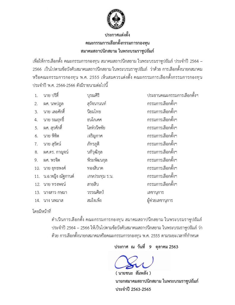 ประกาศแต่งตั้ง คณะกรรมการเลือกตั้งกรรมการกองทุน สมาคมสถาปนิกสยาม ในพระบรมราชูปถัมภ์