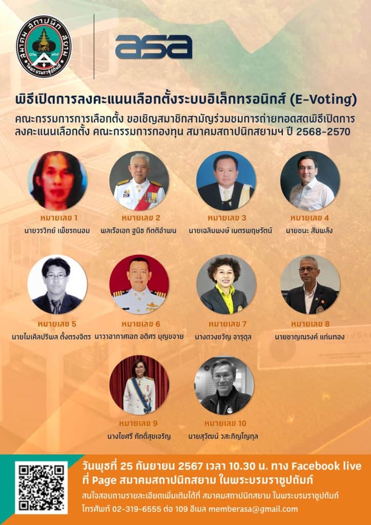 ขอเชิญสมาชิกสมาคมฯ รับชมพิธีเปิดการลงคะแนนเลือกตั้งระบบอิเล็กทรอนิกส์ (E-Voting) คณะกรรมการกองทุน สมาคมสถาปนิกสยาม ในพระบรมราชูปถัมภ์ ปี 2568-2570
