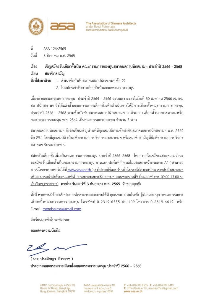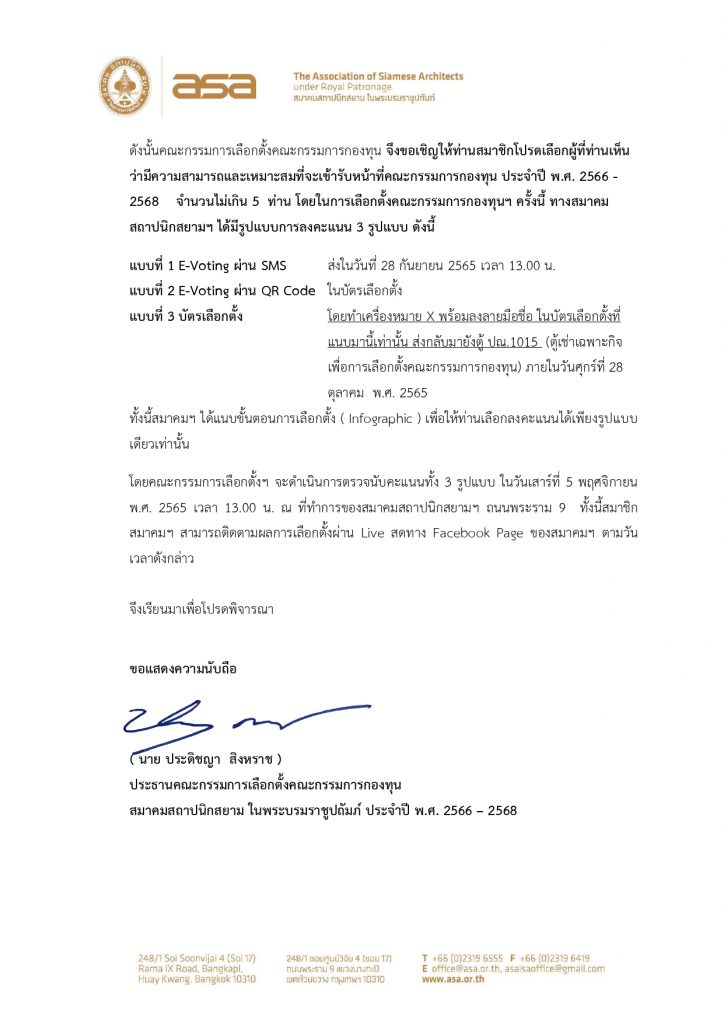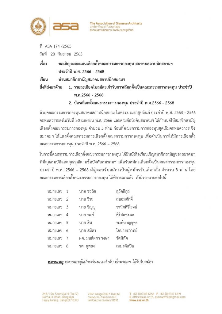 การเลือกตั้งคณะกรรมการกองทุนสมาคมสถาปนิกสยามฯ ปี 66-68