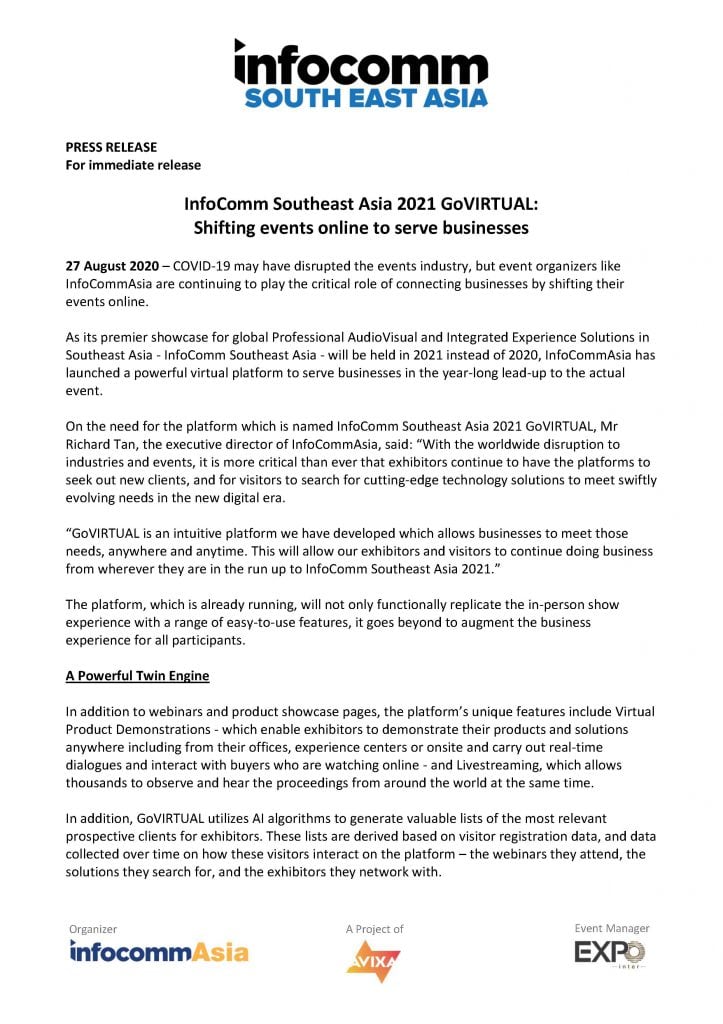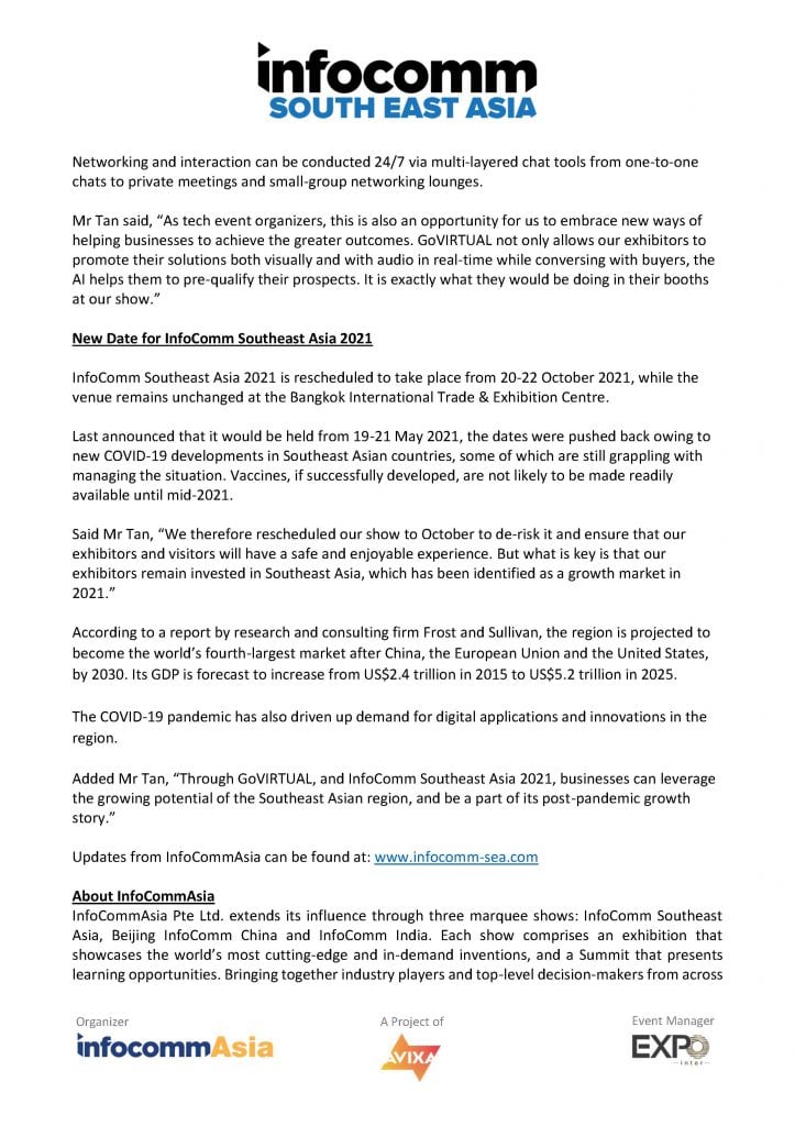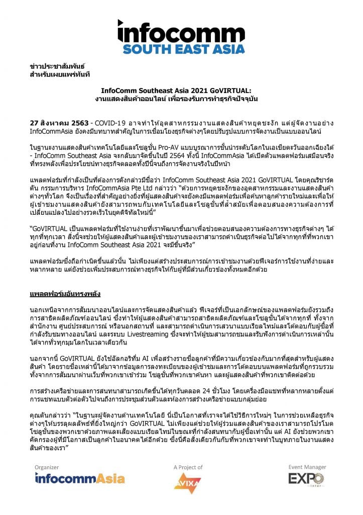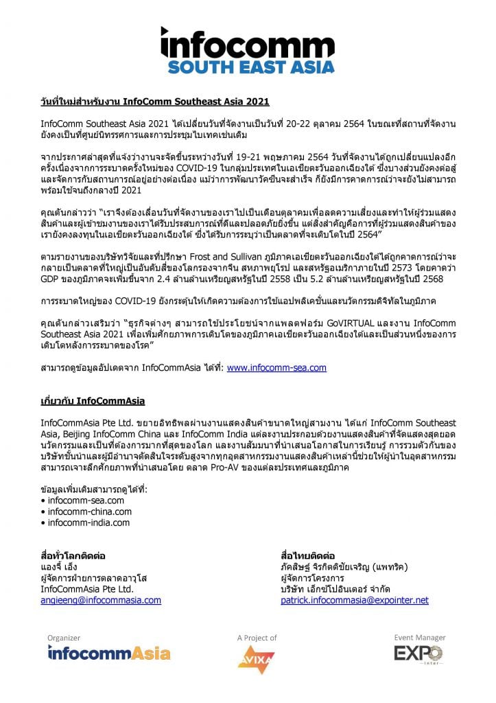 Home » News » InfoComm Southeast Asia 2021 GoVIRTUAL : งานแสดงสินค้าออนไลน์ เพื่อรองรับการทาธุรกิจปัจจุบัน