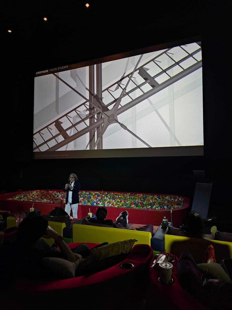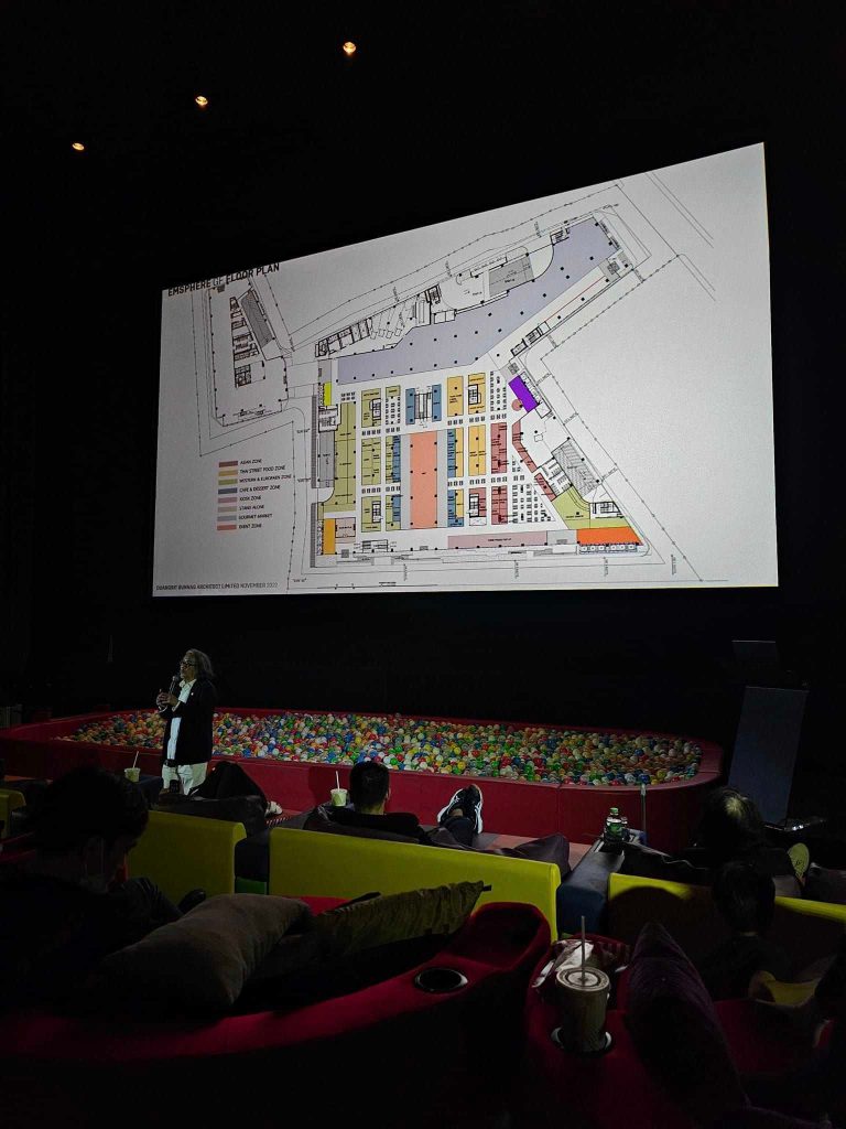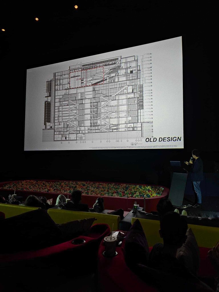 คุณพัทธ์ปิยะ วรรณชาติ ทีมออกแบบจาก Design 103 International Ltd. ได้เล่าถึง การเข้ามารับหน้าที่ออกแบบโครงการนี้เมื่อ 8 ปีที่แล้ว เป็น Shopping District ระดับโลก งานออกแบบสถาปัตยกรรมของที่นี่มีความสลับซับซ้อนมากมาย แต่ยังคงใส่ใจในรายละเอียดของสถาปัตยกรรมที่ต่อเนื่องกันเป็น Aesthetic in Detail ตั้งแต่เริ่มงานออกแบบในปี 2015 ทำ design process ปี 2016-2018 มีdesign หลายแบบมาก จนมาถึงการก่อสร้าง 2018-2022 บางรายละเอียดที่เห็นก่อสร้างอยู่ก็ยังมีการปรับเปลี่ยนแบบอยู่หลายครั้ง เพื่อให้ update มากที่สุดก่อนจะเปิดปีนี้ การทำงานทั้งหมดอยู่บน BIM (Building Information Modeling) Revit Model ที่ช่วยทำให้การทำงานเป็นทีมสามารถตรวจสอบได้รวดเร็ว และปรับเปลี่ยนได้ง่าย