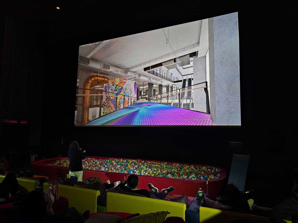 คุณดวงฤทธิ์ บุนนาค ทีมออกแบบจาก DUANGRIT BUNNAG ARCHITECT LIMITED (DBALP) ที่รับผิดชอบการออกแบบพื้นที่ภายในโครงการทั้งหมด รวมถึง Façade ด้านหน้าอาคารด้วย ได้เล่าถึงวิธีการออกแบบภายในที่มีพื้นที่ใหญ่มาก โดยคิดวิธีการทำงาน คือ Pattern Book Catalogue Methodology ที่ใช้ภาพต่างๆ มากมาย มาสร้าง inspiration เพื่อให้ทุกคนเห็นภายเดียวกันก่อน มาสร้าง Key Visual เพื่อออกแบบงานตกแต่งภายในทั้งหมด เพราะสิ่งที่สร้างขึ้นที่นี่จะเป็นของใหม่หมด ที่ต้องทำงานเยอะมาก ในแต่ละชั้น แต่ละ zone ก็จะมี story ของชั้นนั้นๆ เพื่อสร้างเอกลักษณ์ ให้แตกต่างกัน โดยมีการใช้ ทั้งปูนเปลือย ตะแกรงเหล็ก เสาเหล็ก หุ้มเหล็ก หรือการใส่จอ LED เพื่อสร้าง ambient light ให้กับ space