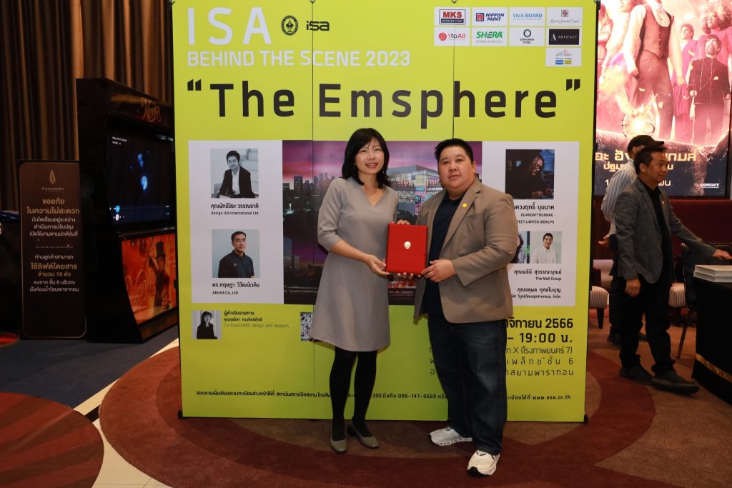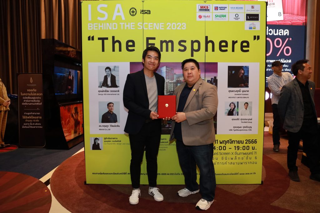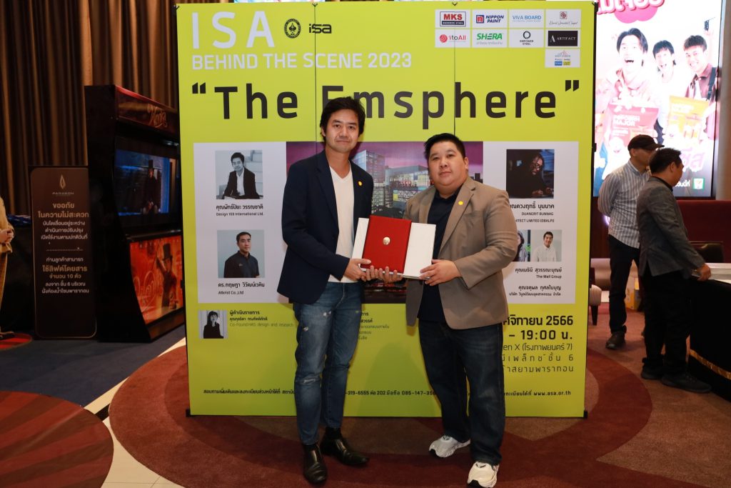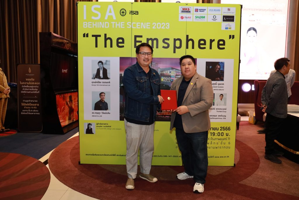 จบไปแล้ว สำหรับ กิจกรรม ISA Behind the Scene 2023 “ The Emsphere ” ที่จัดขึ้นโดย ISAสถาบันสถาปนิกสยาม สมาคมสถาปนิกสยามฯ โดยมองเห็นประโยชน์ของการถ่ายทอดความรู้จากรุ่นสู่รุ่นสืบเนื่องมาจากปีที่แล้ว ในปีนี้จึงมีความประสงค์ที่จะจัดกิจกรรมต่อเนื่อง เพื่อเป็นการพบปะแลกเปลี่ยนประสบการณ์ระหว่างสถาปนิกรุ่นพี่และรุ่นน้อง เมื่อวันเสาร์ที่ 11 พฤศจิกายน พ.ศ. 2566 จัดขึ้นที่โรงภาพยนตร์คิดส์ ซีนีมา พารากอน ซีนีเพล็กซ์ ชั้น 6 อาคารศูนย์การค้าสยามพารากอน ที่ผ่านมา