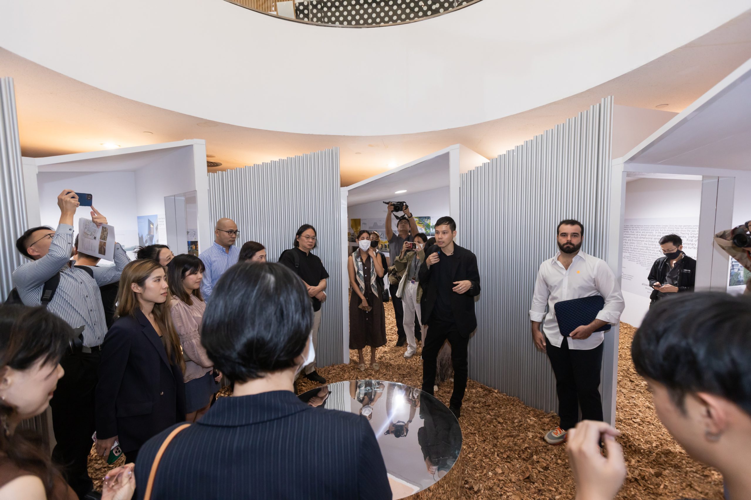 โดยในงานแบ่งเป็นสองช่วง ในช่วงแรกเริ่มด้วยคุณเจอร์รี่ หง (Jenchieh Hung) ประธานคณะทำงานนิทรรศการจากสมาคมสถาปนิกสยามฯ ร่วมกับกุลธิดา ทรงกิตติภักดี ผู้ร่วมก่อตั้งและสถาปนิกหลักจาก HAS Design and Research หัวหน้าภัณฑารักษ์ของนิทรรศการได้พาแขกผู้มีเกียรติจากหลายสาขาจำนวน 100 ท่าน รวมทั้งสถาปนิกผู้มีผลงานจัดแสดงอีก 6 บริษัท ได้แก่ บริษัท สถาปนิก 49 จำกัด, บริษัทสถาปนิกชุมชนและสิ่งแวดล้อม อาศรมศิลป์ จำกัด, บริษัท ดวงฤทธิ์ บุนนาค จำกัด, บริษัท ดีพาร์ทเม้นท์ ออฟ อาร์คิเทคเจอร์ จำกัด และ Behet Bondzio Lin Architekten, Atelier Or จากไต้หวัน ชมนิทรรศการร่วมกัน