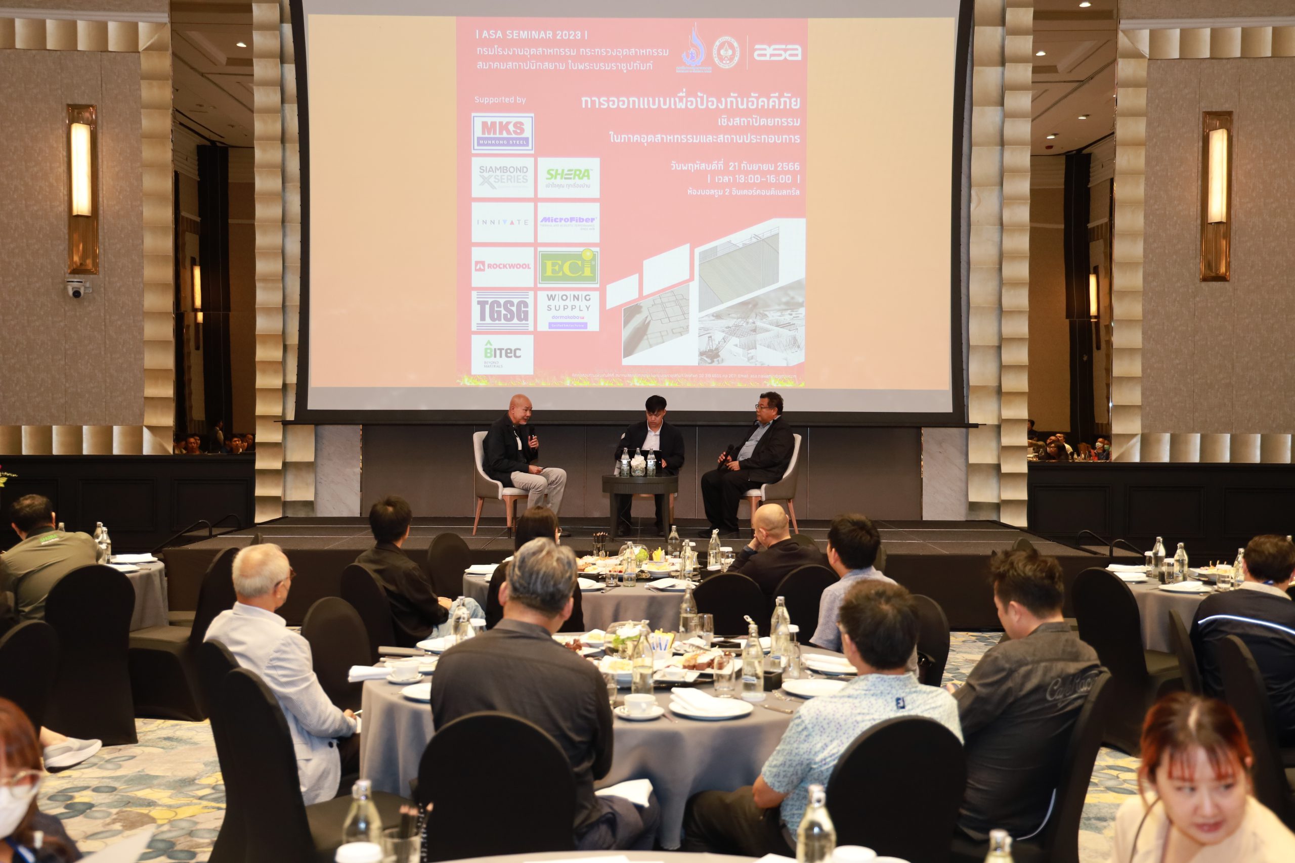 เมื่อวันที่ 21 กันยายน 2566 สมาคมสถาปนิกสยาม ในพระบรมราชูปถัมภ์ ร่วมกับ กรมโรงงานอุตสาหกรรม กระทรวงอุตสาหกรรม จัดงานสัมมนาหัวข้อ “Passive Fire Protection การออกแบบเพื่อป้องกันอัคคีภัยเชิงสถาปัตยกรรมในโรงงานอุตสาหกรรม” ณ ห้องบอลรูม 2 โรงแรมอินเตอร์คอนทิเนนตัล