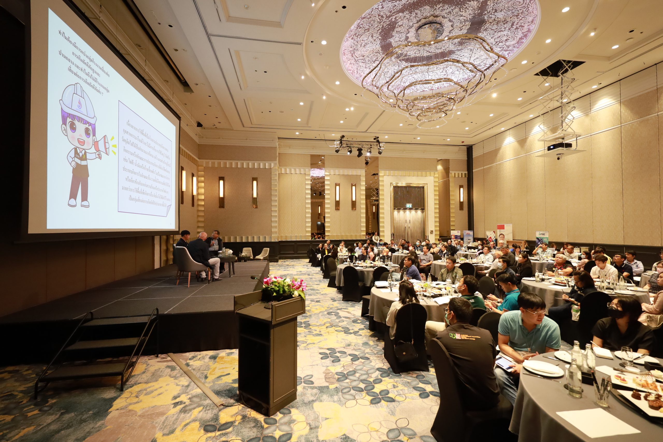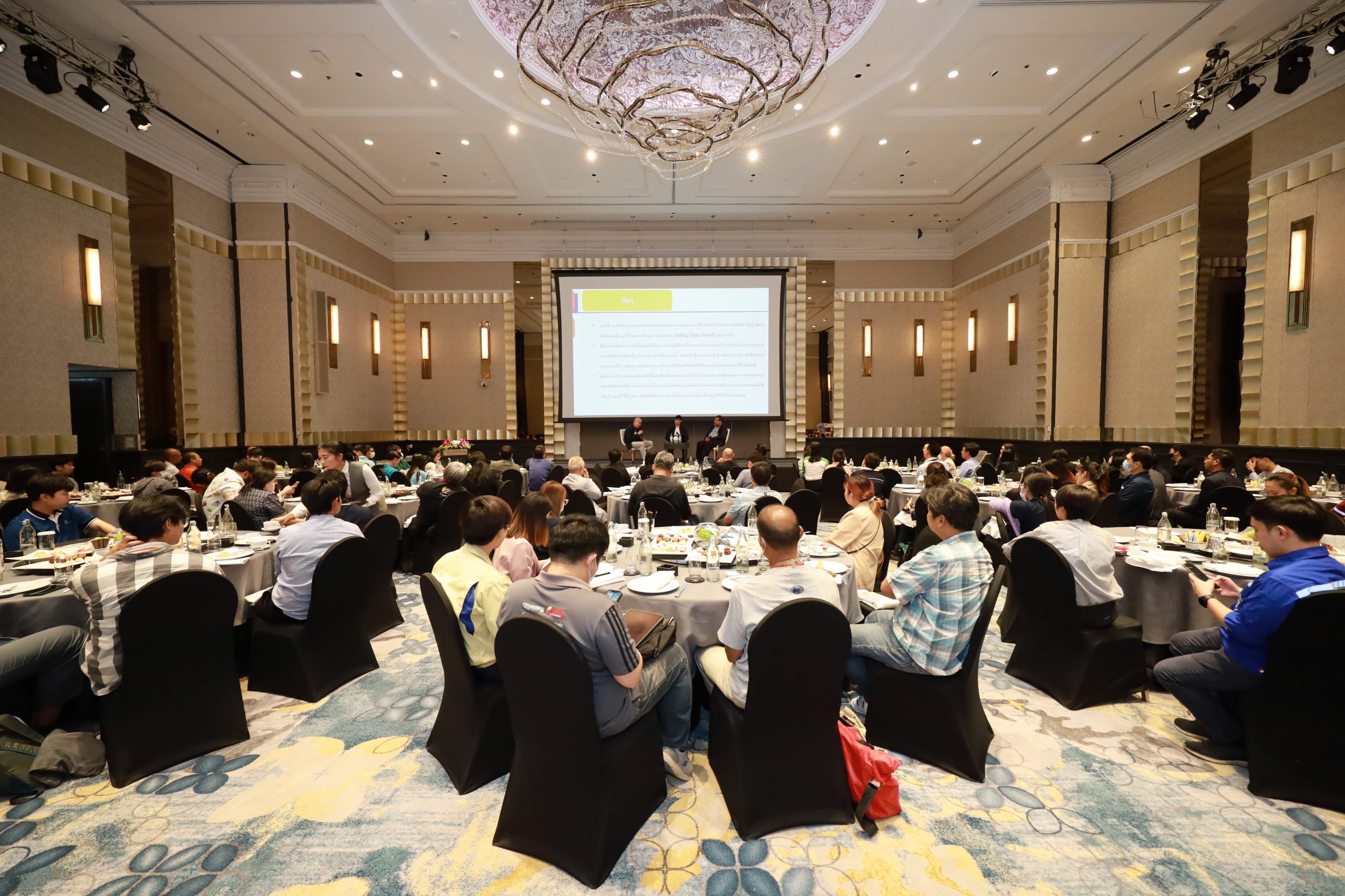 ได้รับเกียรติจากคุณนิเวศ วะสีนนท์ อุปนายกฝ่ายวิชาชีพสมาคมฯ เป็นประธานกล่าวเปิดงาน พร้อมด้วย คุณวิศิษย์ศักดิ์ กฤษณพันธ์ วิศวกรชำนาญการพิเศษ รักษาการในตำแหน่งวิศวกรเชี่ยวชาญ ผู้แทนกรมโรงงานอุตสาหกรรม กระทรวงอุตสาหกรรม กล่าวต้อนรับ ในช่วงสัมมนา พ.ต.ท.ดร.บัณฑิต ประดับสุข กรรมาธิการฝ่ายวิชาชีพสมาคมฯ เป็นวิทยากรบรรยาย ร่วมกับ คุณชยาภิวัฒน์ มานะศึก นักวิทยาศาสตร์ชำนาญพิเศษ และ คุณชยางกูร จินดา วิศวกรชำนาญการ เพื่อให้ความรู้ในด้านการออกแบบการกั้นแยกอาคารและเรื่องกฎหมายเพื่อความปลอดภัยต่อผู้ใช้งาน รวมถึง กฎหมายที่เกี่ยวข้องกับการออกแบบโรงงานอุตสาหกรรม ซึ่งมีสมาชิก สถาปนิก วิศวกร และผู้สนใจเข้าร่วมฟังสัมมนาเป็นจำนวนมาก