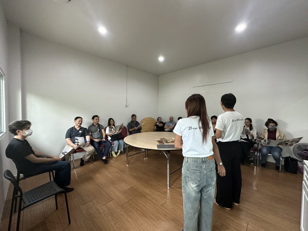 หลังจากพักเที่ยง กิจกรรมช่วงบ่าย รับฟังการบรรยายให้ความรู้เกี่ยวกับวัสดุไม้เทียม วัสดุทดแทนไม้ BIOWOOD โดยมีส่วนประกอบมาจากไม้สนป่าปลูก และพีวีซี ทำให้มีลักษณะมีความเป็นธรรมชาติใกล้เคียงไม้จริง ใช้งานได้ทั้งภายนอกและภายในอาคาร ครบทั้งอาคาร เช่น พื้น พดาน ผนังอาคาร กันสาด บันได ราวกันตก รั้วและเฟอร์นิเจอร์ โดยมีโรงงานผลิตหลักตั้งอยู่ที่ประเทศอินโดนีเซีย