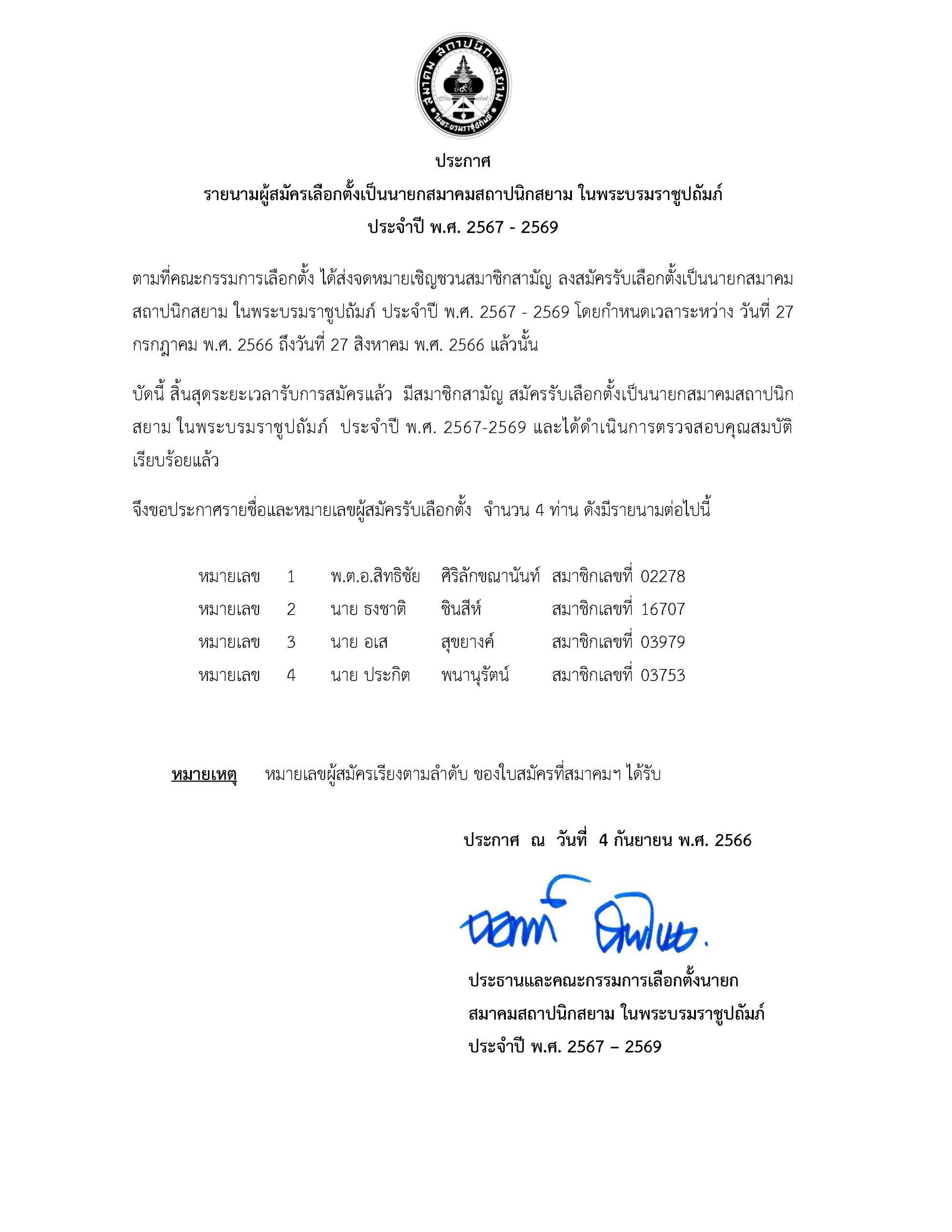 Home » News » ประกาศรายนามผู้สมัครเลือกตั้งเป็นายกสมาคมสถาปนิกสยาม ในพระบรมราชูปถัมภ์ ประจำปี พ.ศ. 2567-2569