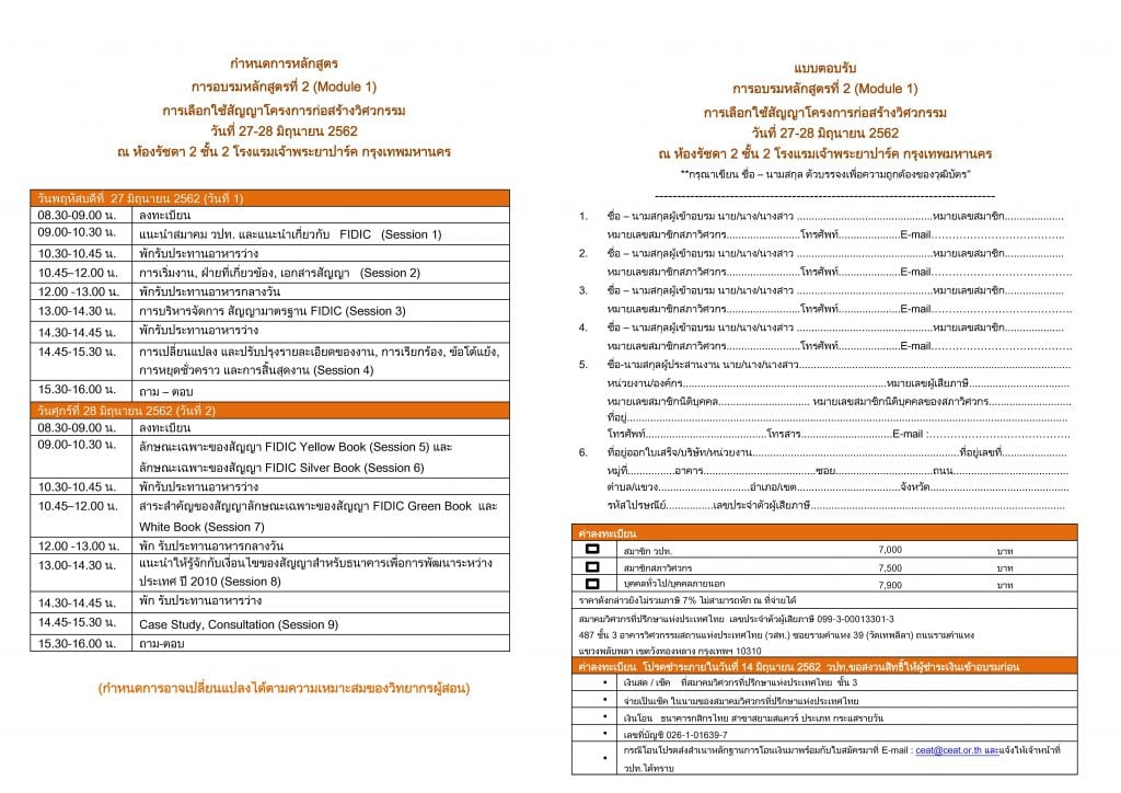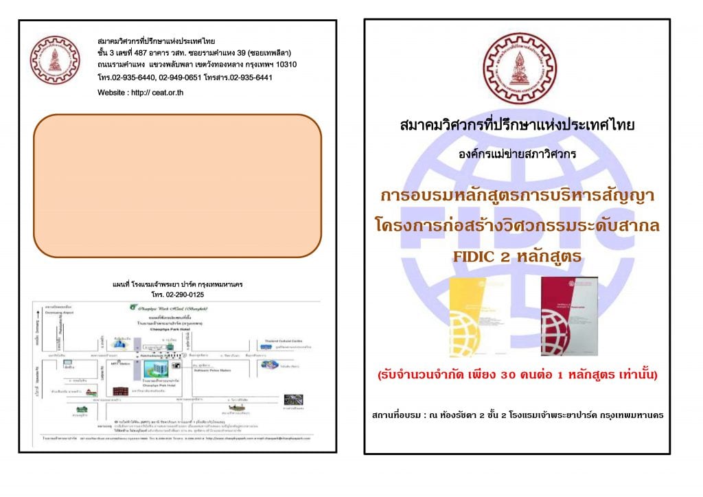 Home » News » การอบรมหลักสตูรการบริหารสัญญา โครงการก่อสรา้งวิศวกรรมระดับสากล FIDIC 2 หลักสูตร