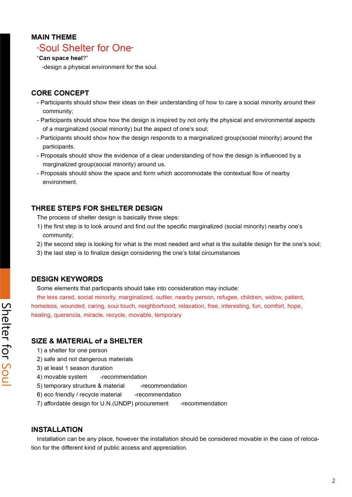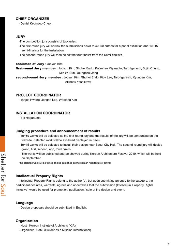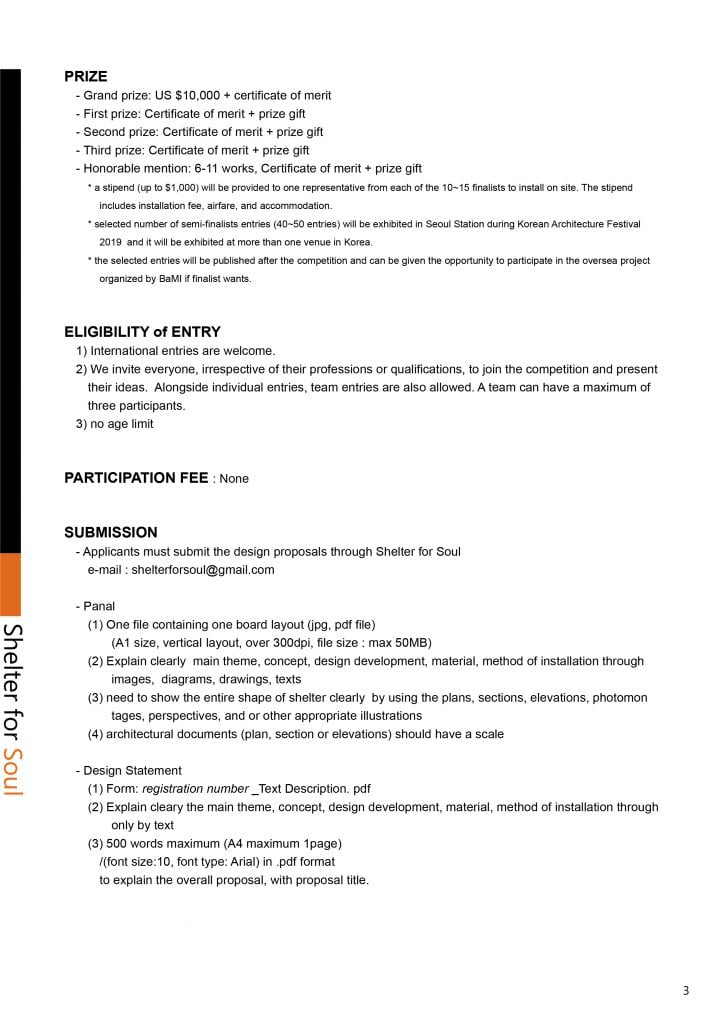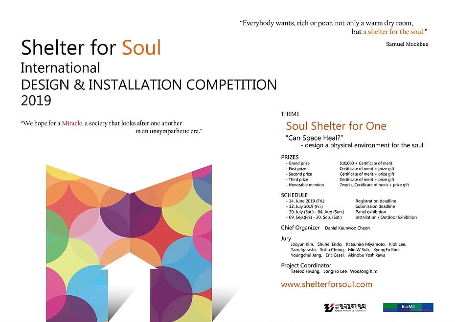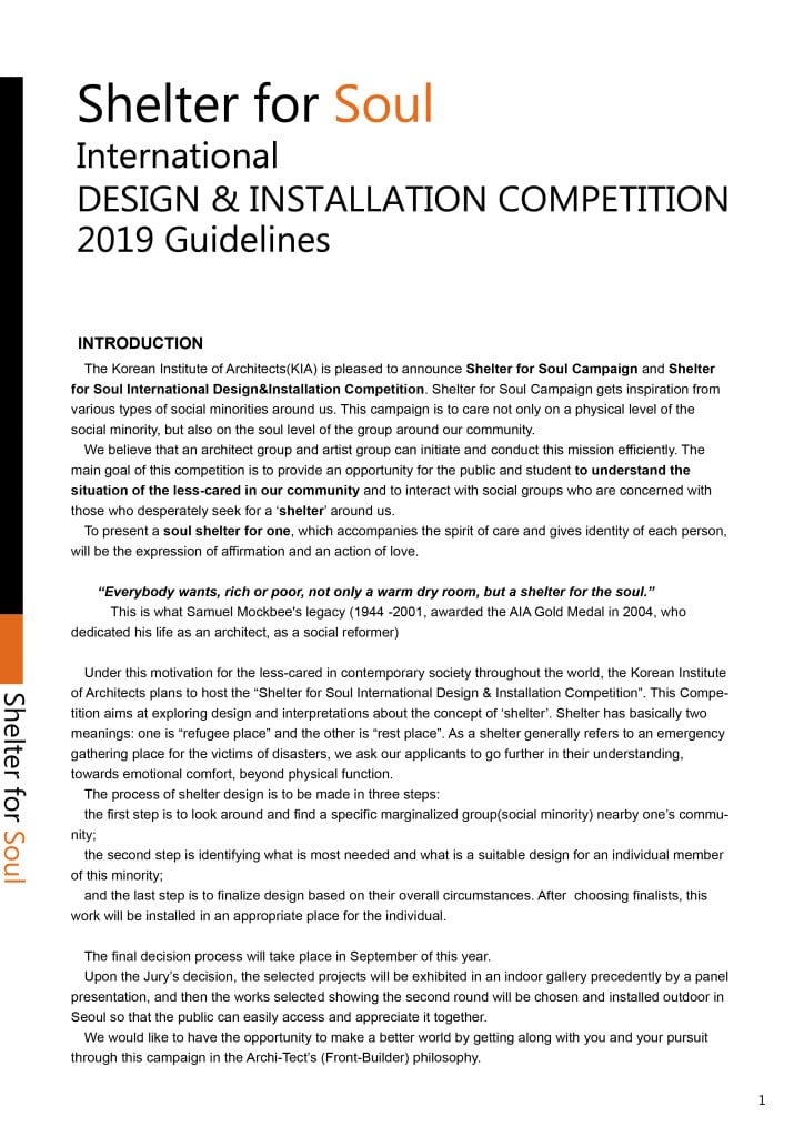 Korean Institute of Architects (KIA) จัดการประกวดการออกแบบและติดตั้งผลงาน “Shelter for Soul International Design & Installation Competition 2019”